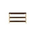 Entertain in style with the Eschenbach Sofa Table. This classic rectangular occasional table features a cherry finished table top with a metal base. This distinctive metal and wood cocktail table feature unique tapered legs with two open wood shelf for storage and display. This stylish accent table has a captivating look that makes it an eye-catching piece in any room. Use it to add a touch of contemporary flair to a traditional space or to simply complete a modern aesthetic.