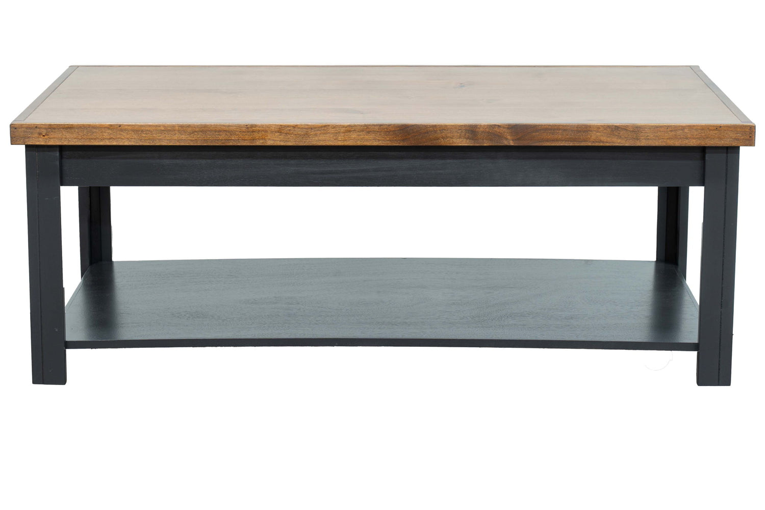 The Essex 48” Coffee Table delivers a flawless combination of modern farmhouse style and country simplicity. Beautifully crafted from Poplar Solids, Okoume Veneers and Knotty Alder, this cocktail table features a two-tone Black and Whiskey finish and will accent your upholstery beautifully. The vast table top and shelf below are ideal to showcase home décor accents while the five caster wheels on the base ensure quick and easy movement throughout your space. Fully assembled upon arrival, this piece from Bridgevine Home is ready to unbox and enjoy.