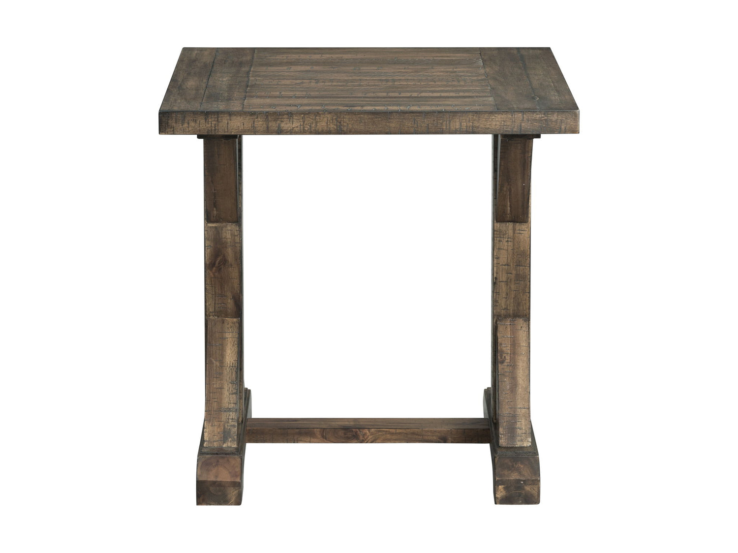 The Finn 3PC Accent Trestle Table Set is the perfect trio for your living room! Kicking your feet up at the end of the day never looked this good. This set includes a coffee table and two end tables. Every piece in this collection features trestle legs, adding extra flair to this already outstanding occasional table set. The stretcher bases keep the tables functional, but also adds interest to its overall design. This trio set is finished in a rich, dark walnut; perfect for blending with any existing decor you might have. Distressed markings are featured throughout, giving this accent table set its rustic design.