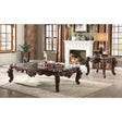 KD, Rectangular Leg Coffee Table • No Storage (Open Base) • Scalloped Marble Top • Wooden Scalloped Apron with Carved Floral Motifs • Wooden Queen Anne Legs