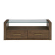 Bring casual elegance to your living room with the Garland Table, a stylish blend of modern design and rustic charm. Its clean lines and saw rasp distressing in a warm finish create a beautiful side table. The clear glass top offers a lovely display area, while the one drawer provides convenient storage for essentials. With plastic glides for easy movement, this end table makes a perfect side companion for a chair or sofa. Functional and chic, it’s a great addition to any home.