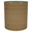 Wrapped in handwoven seagrass, this round accent table adds organic warmth to any living room. A clear tempered glass top offers a smooth, functional surface while revealing the textured beauty beneath. Its cylindrical form is supported by a durable plywood frame and finished in a light natural tone. This occasional table blends rustic charm with modern simplicity, making it ideal as a side table, end table, or compact cocktail table.