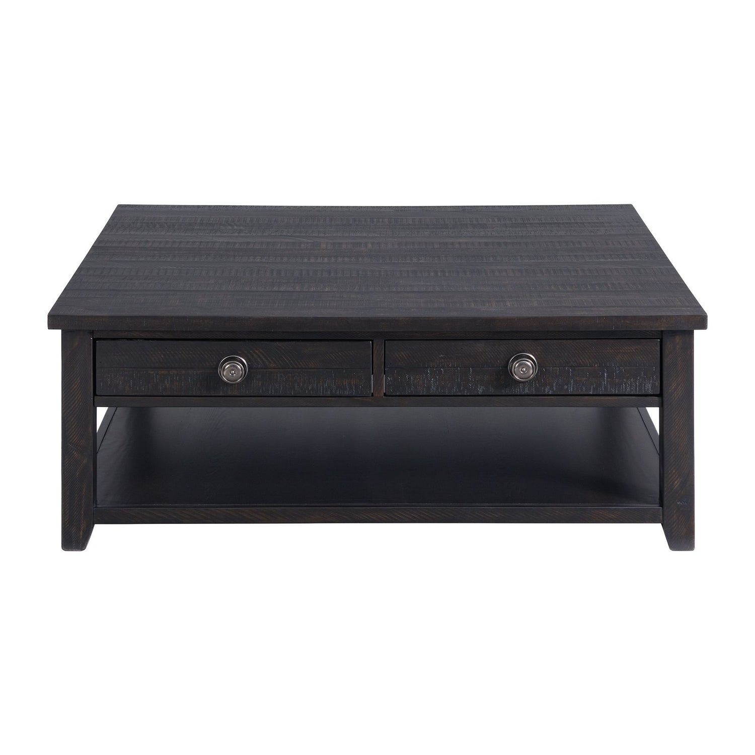 The Kendyl occasional square coffee table has a beautiful brown finish. Featuring two drawers and a solid open bottom shelf that is perfect for storage. The transitional design of the Kendyl will fit with any style.