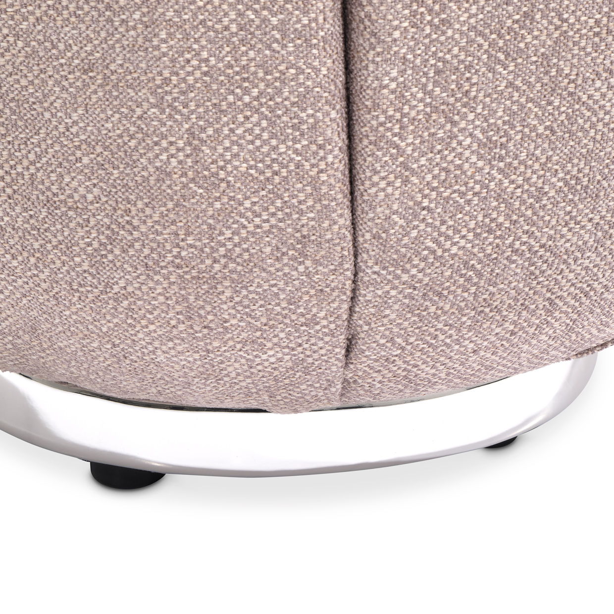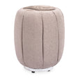 - Table is upholstered in tweed-like woven fabric in a tan nougat hue