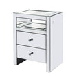 Style and storage abound in the ample and functional design of the Malish occasional table. Two drawers and open compartment offer plentiful enclosed storage for remotes, magazines, or any other items you prefer to keep close at hand. At night, you can turn on and off the LED Function. A glam display table that naturally attracts the eye with its beveled mirrored finish.