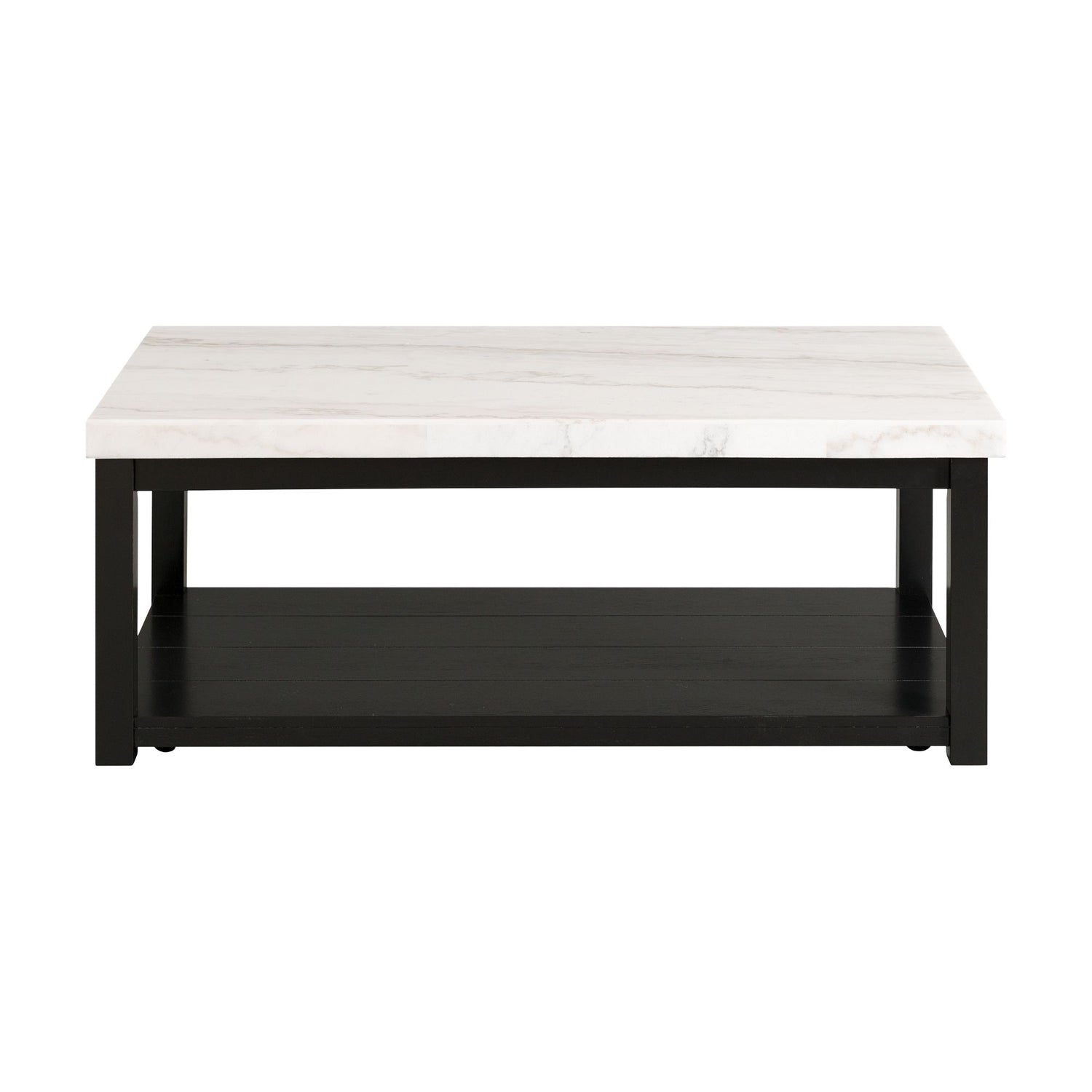 The Marcello White Marble Rectangle Coffee Table will give your living room the update youve been craving! This coffee table features a solid, marble table top, that contrasts beautifully with the black wooden base. This coffee table comes with a bottom shelf, ideal for displaying your favorite decor. The plank style shelf adds extra character to this already stunning piece. Add this gorgeous piece to your home today for a look that will last year after year.