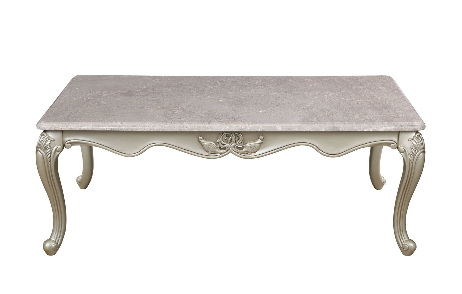 The Monique Royal Classic Cocktail Table epitomizes heirloom-quality craftsmanship and timeless elegance. Expertly constructed from premium pine solids and adorned with durable polyurethane carvings, this coffee table is lightweight, moisture-resistant, and pest-resistant, ensuring long-lasting beauty and functionality. The luxurious, beveled, and gracefully contoured genuine marble top offers a sophisticated look with superior scratch and water resistance. Featuring traditional Rococo style, the table showcases ornate details, gracefully curved legs, and intricate carvings, embodying the elegance and fine craftsmanship of Rococo design. This cocktail table is a standout addition to any traditional or opulent decor setting, promising to enhance your living space with its refined style and enduring charm.
