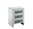 The Noralie Accent Table will give any room a touch of glamour. Mirror and glass materials give it a modern and clear touch while faux diamond inlays add glam style to this piece. Use this unique piece as the perfect accent for any room décor. It has three storage drawers with self closure and safety stop, providing ample and convenient storage for small electronics, cosmetics, accent items, jewelry, and more.