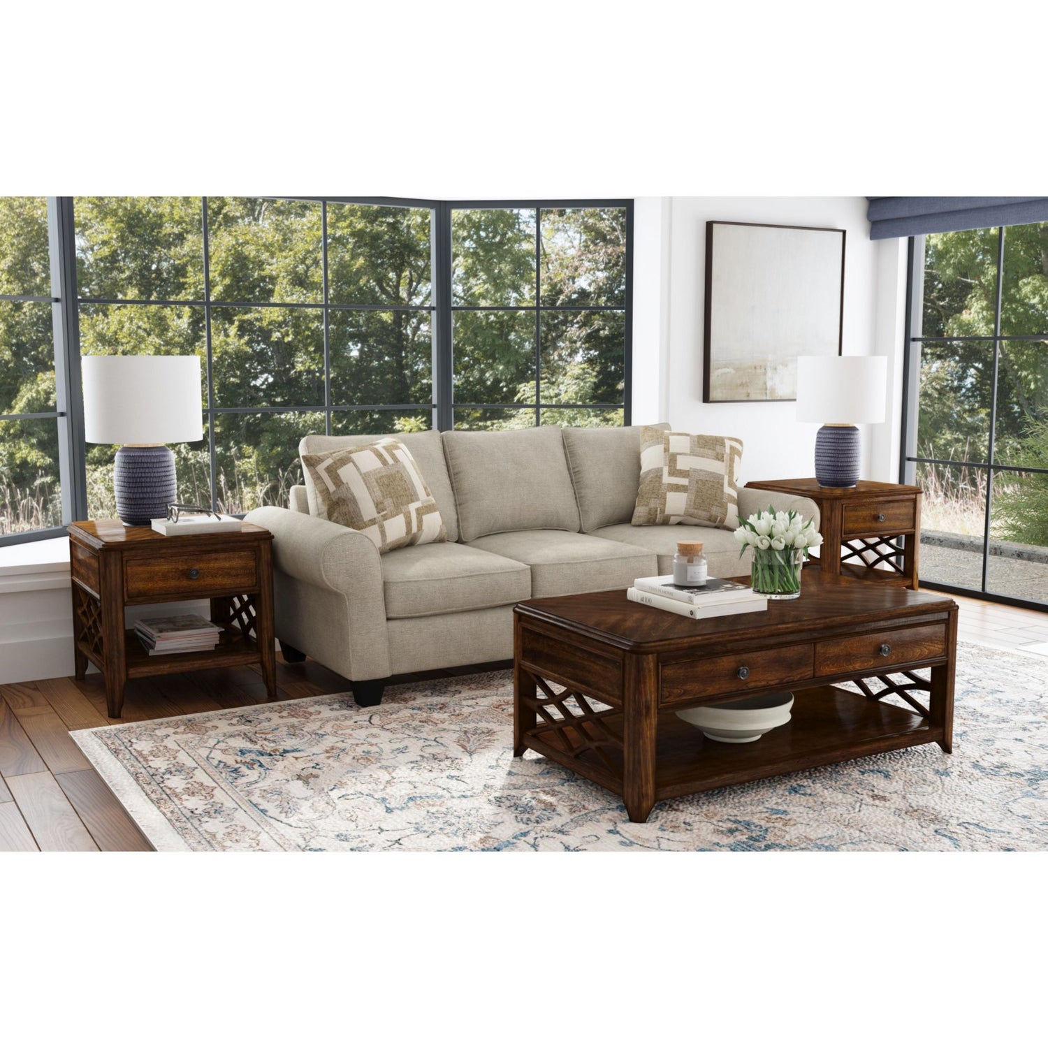 Elevate your living space with the Phillipe 3PC Occasional Set, a perfect blend of elegance and functionality. Featuring a warm cherry finish on birch veneer, these tables add richness and sophistication to any room. The intricate lattice-style side panels bring a touch of elegance and visual interest, while the sleek metal knobs provide a stylish contrast. Spacious drawers with smooth ball bearing glides offer easy storage, and the lower shelves provide extra space for displaying books, decor, or storage bins. Supported by tapered legs for stability and a refined, classic look, this occasional set effortlessly enhances both traditional and modern decor.