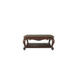 KD, Square Leg Coffee Table • Storage: Open Compartment (Bottom Shelf) • Features: Wood Scalloped Top & Shelf, Oversized Queen Anne Legs with Oversized Molding Trim w/Antique Brushed Finish •• CONSTRUCTION] Wooden Top, Apron & Rectangular Shelf: Wood (Aspen/Poplar), Wood Veneer (Parquet Pattern), Poly-Resin Moldings • Queen Anne Leg: Solid Wood w/Poly-Resin Moldings