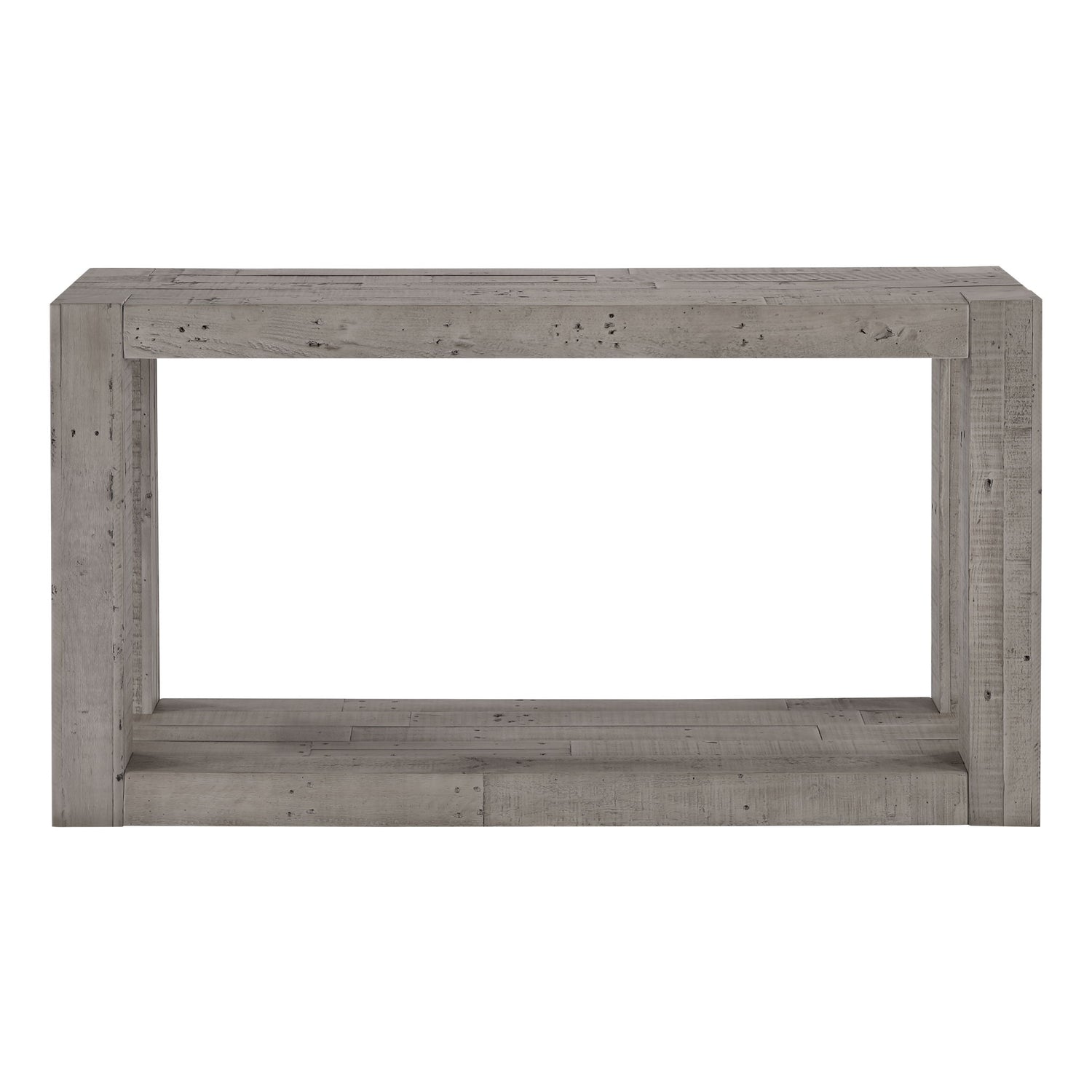 Crafted from solid reclaimed pine with a distressed gray finish and saw rasping for an heirloom feel, the Pinedale Sofa Table exudes rustic charm. Its versatile design makes it perfect for placement in a hallway, behind a sofa, or as a smaller entertainment piece. The relaxed finish and neutral tones complement a variety of today's casual interiors, adding warmth and character to any space. Embrace the timeless appeal and enduring quality of the Pinedale Sofa Table, where classic design meets practical functionality.