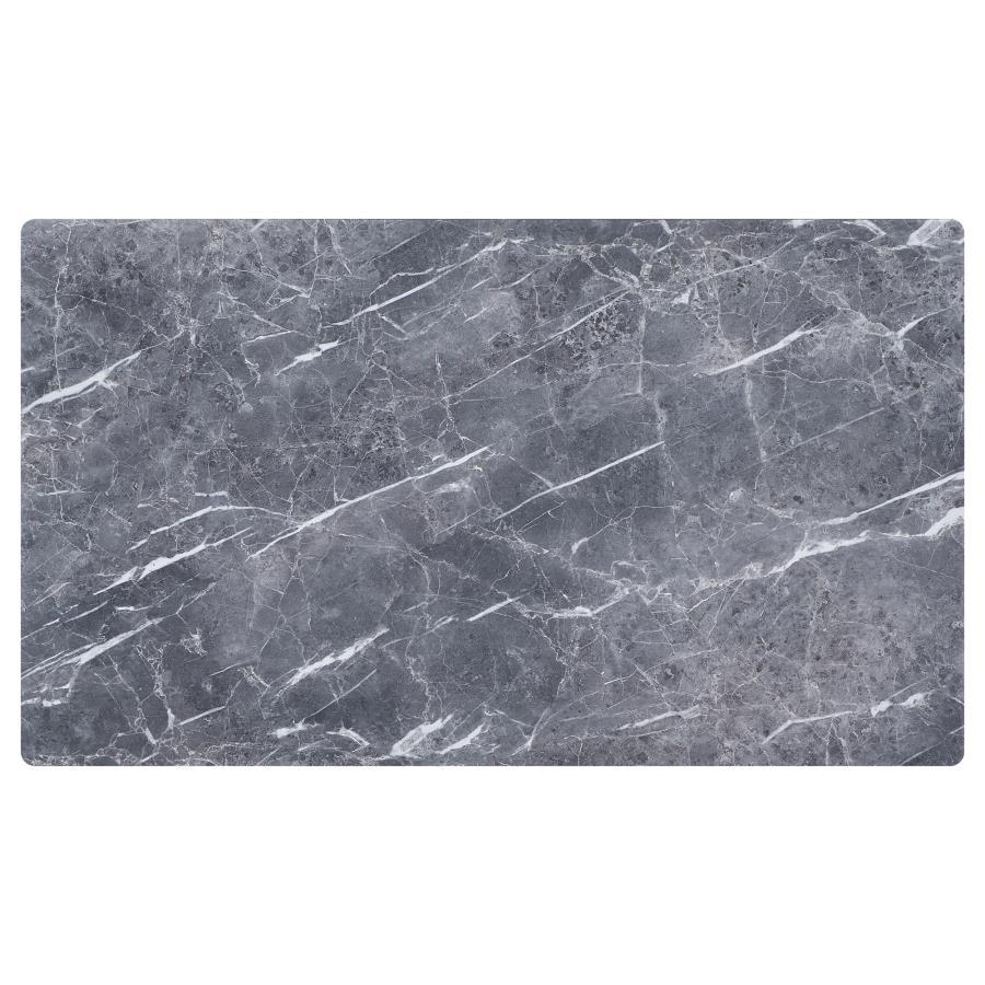 The table stretches out with a confidence born of its mid-century modern heritage, flaunting a rectangular top that offers the luxurious look of marble without the weight. Its high-pressure laminate surface, infused with decorative faux marble laminate, is a visual feast, juxtaposed against the natural brown base that anchors it with a touch of the earthy and real. The sleek lines and cool hues are a nod to a design era that celebrated clean aesthetics and functional beauty. It is more than a surface; it's a statement piece, designed to gather around, to showcase, to be lived with and loved.