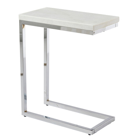 Ebby - Square Genuine Marble Top Metal End Table - White
