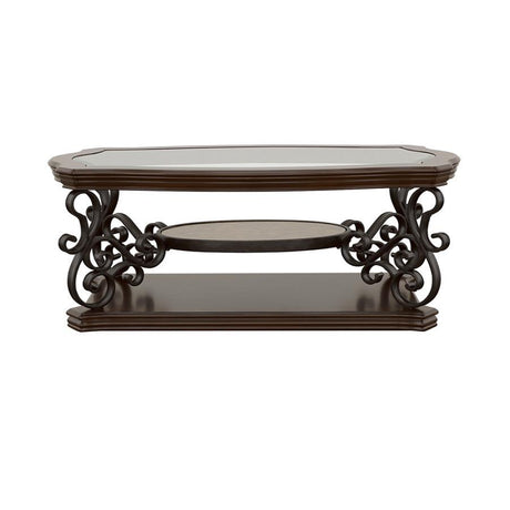 Laney - 1-Shelf Glass Top Rectangular Coffee Table - Deep Merlot