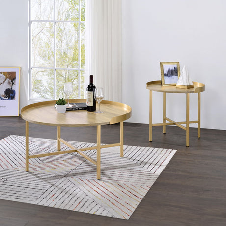 Mithea - Coffee Table - Oak Table Top & Gold Finish