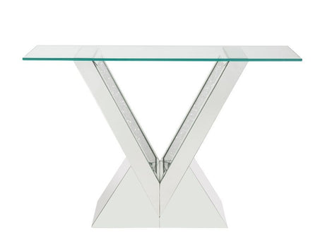 Noralie - Accent Table - Clear Glass, Mirrored & Faux Diamonds - 32"