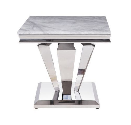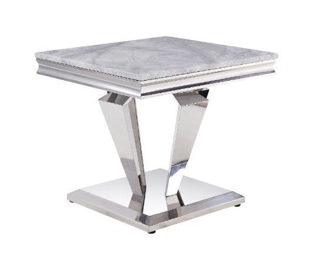 Satinka - End Table - Light Gray Printed Faux Marble & Mirrored Silver Finish