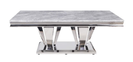 Satinka - Coffee Table - Light Gray Printed Faux Marble & Mirrored Silver Finish