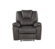 The Katrine Reclining Chair showcases the best in manual motion upholstery with this recliner that is sure to become your favorite seat in the house. The Recliner is covered in a luxurious faux-leather that features baseball stitching, padded armrests and a raised, padded headrest for a stylish and comfortable view and seat even when fully reclined.