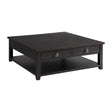 The Kendyl occasional square coffee table has a beautiful brown finish. Featuring two drawers and a solid open bottom shelf that is perfect for storage. The transitional design of the Kendyl will fit with any style.