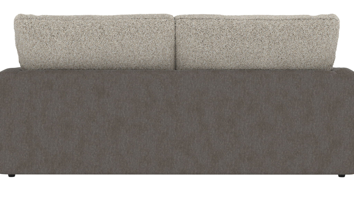 Reddington is a stationary sofa group that features the ultimate comfort of our Cuddler Cushion. This dual-fabric application is accented with an ecelectic mix of toss pillows in a variety of textures - including sphere pillows in a luxurious faux fur. Reddington includes a convenient Cocktail Ottoman and is available in one color combination: Slate/Fawn.