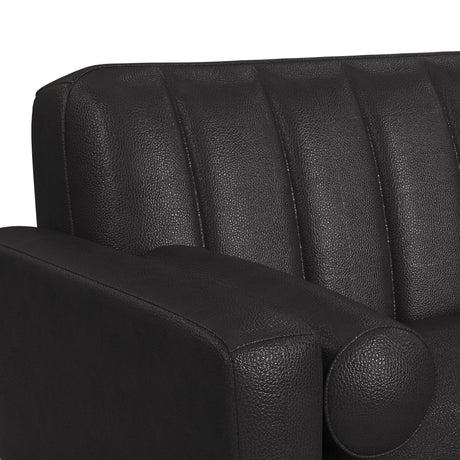 House - Beatrice Loveseat - Tan PU, Black PU & Charcoal Finish