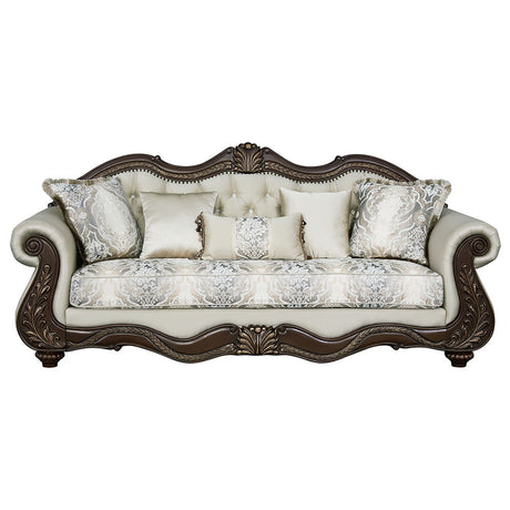 Pierce - Sofa With 5 Pillows - Beige Fabric & Cherry Finish