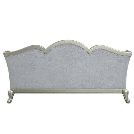 Qunsia - Sofa - Light Gray Linen & Champagne Finish
