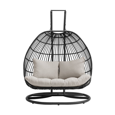 Oldi - Patio Swing Chair - Beige Fabric & Black Wicker