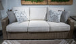 Who says the great outdoors isn’t made for luxury living? This outdoor sofa offers all of the high-end design, plush comfort and durability you could ask for, and then some. Its all-weather aluminum frame and resin wicker provide the easy-breezy look you love without the high maintenance. And rest assured—the high-performing Nuvella® fabric is made to stand up to the elements.