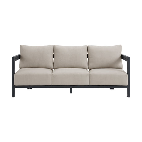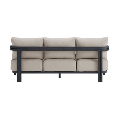 Salena - Patio Sofa & Ottoman - Beige Fabric & Gray Wicker - 26"