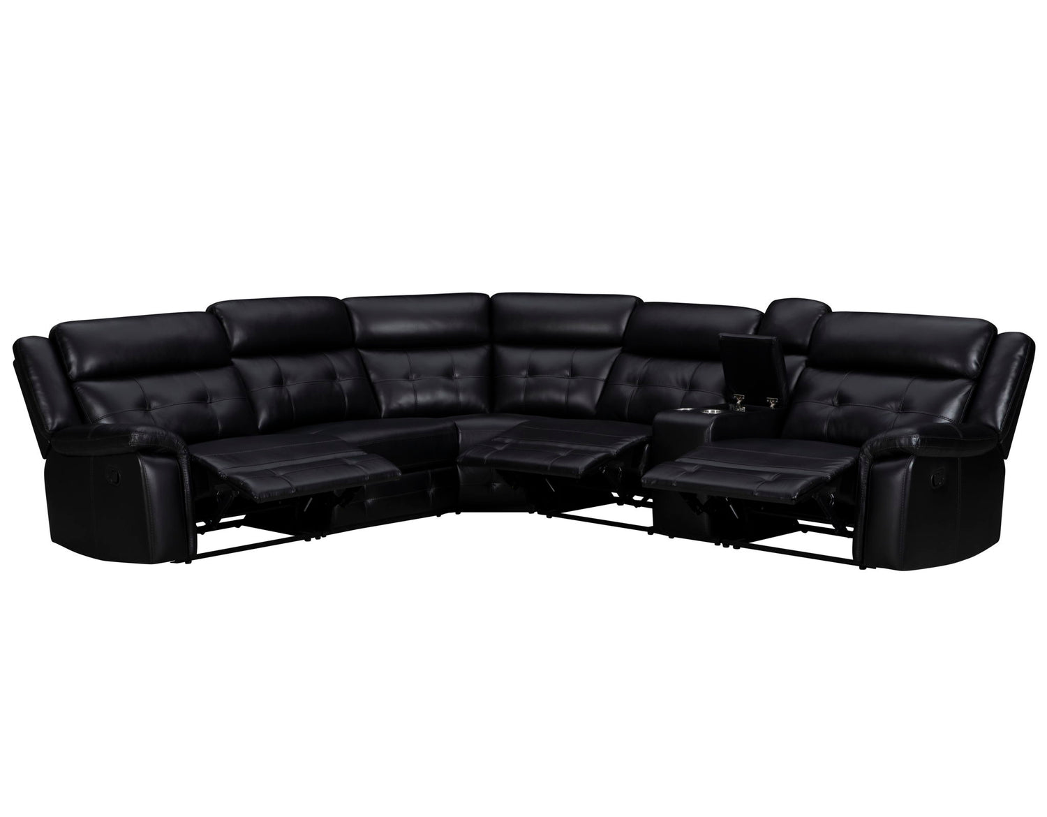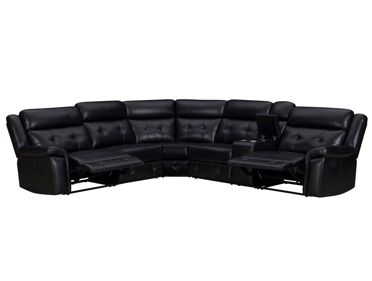 Meet Clayton, the ideal sectional that perfectly combines comfort and practicality. This sectional is perfect for any evening with its manual recline feature and a convenient console equipped with cupholders. The inherently cleanable faux leather makes maintenance effortless. The elegant tufting on the back and leg rests a refined touch, offering style and relaxation—all with Clayton.