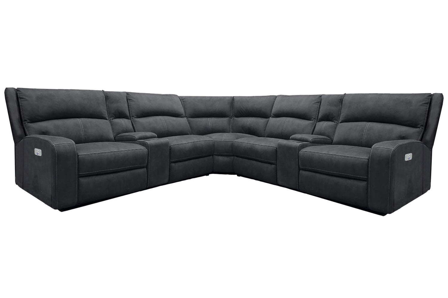 Polaris - 6 Piece Modular Power Reclining Sectional With Power Adjustable Headrests - Slate