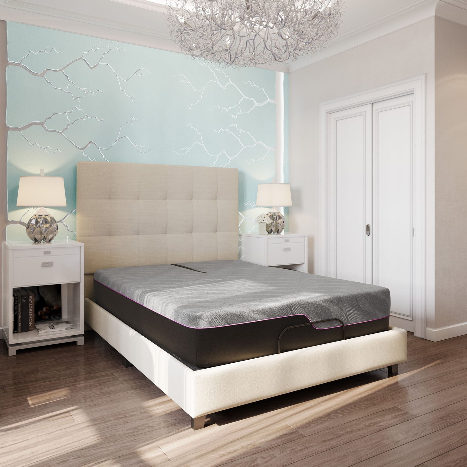 Renew - 11" Flex Head Adjustable King Size 3-Layer Latex Foam Mattress And Bed Frame Bundle - Black / Gray