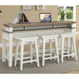 Destined to be the new hub of your home, the Everywhere Console with 3 Stools, from the Americana Modern collection combines style and functionality. Place it behind a sofa or in a nook to create a flexible casual dining area. Its crisp white painted Cotton finish is accented with a contrasting wood-tone top in Weathered Natural. A multifunctional Power Center with dual AC outlet and a dual USB port makes it an ideal location for working from home or surfing the web. Two coordinating backless stools in Cotton complete its casually elegant look.