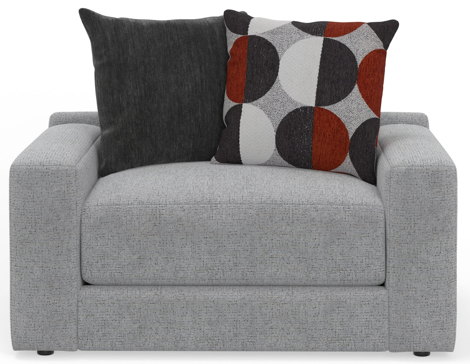 Arlo is a modern track arm design in a soft and durable chenille fabric. This large scale sectional features our deep seating Cuddler Cushion for ulitmate comfort.