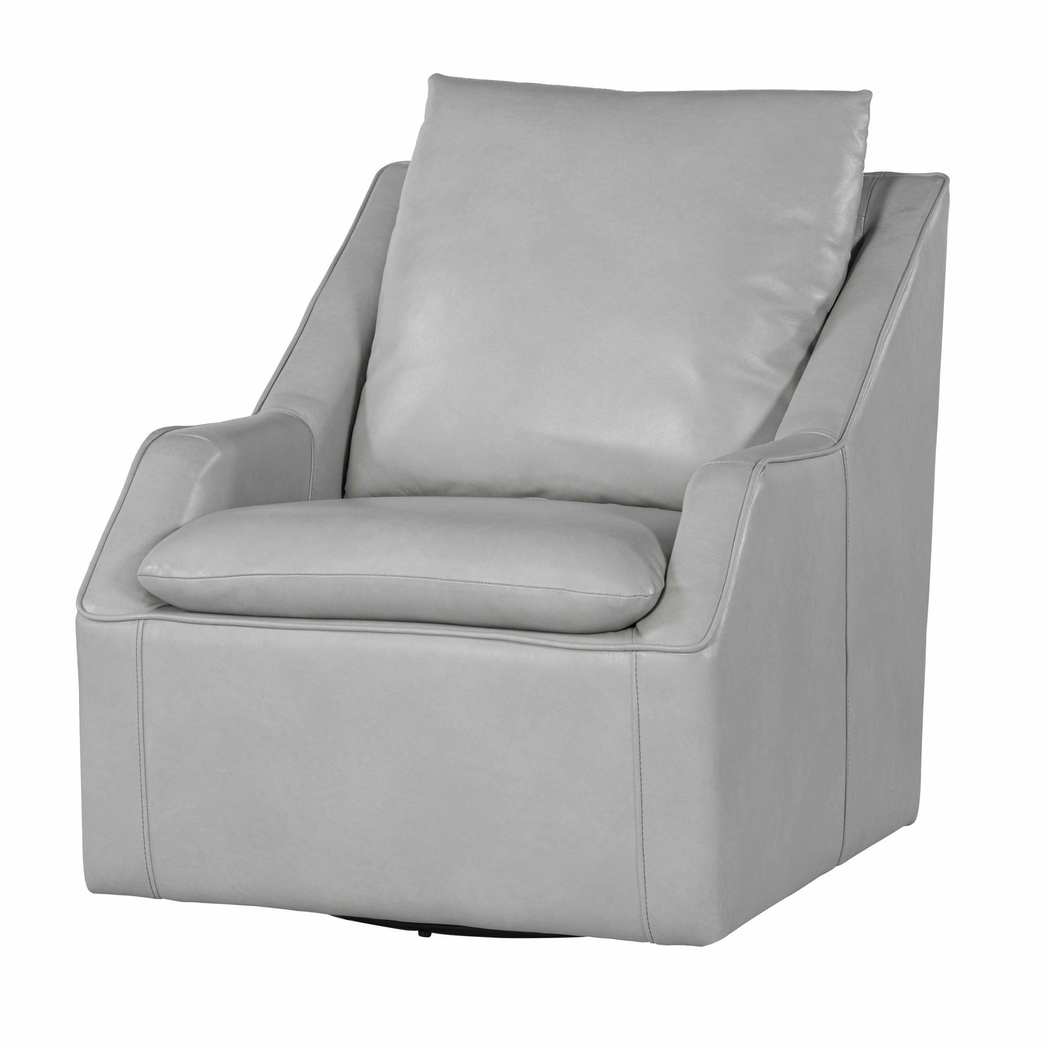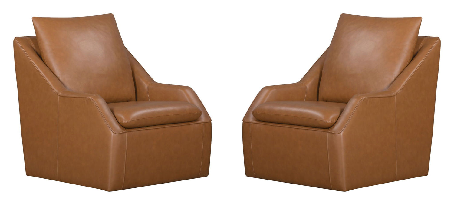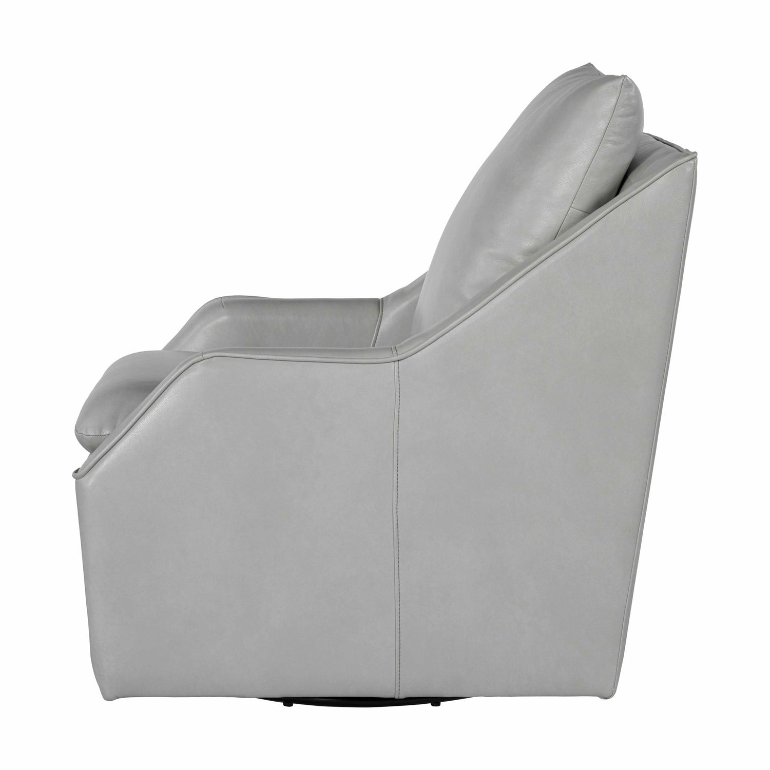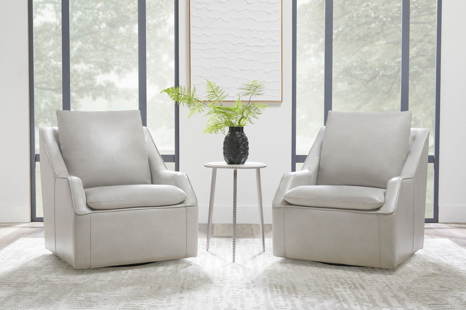 The Asher accent chair features a 360-degree swivel for ease of motion and a modern low-profile design. The comfortable, attached pillowtop seat has subtle welting and stitching, and the back cushion is removable, making cleaning a breeze. The Asher accent chair adds comfort and style to any room and is available in various colors in 100% top-grain leather.