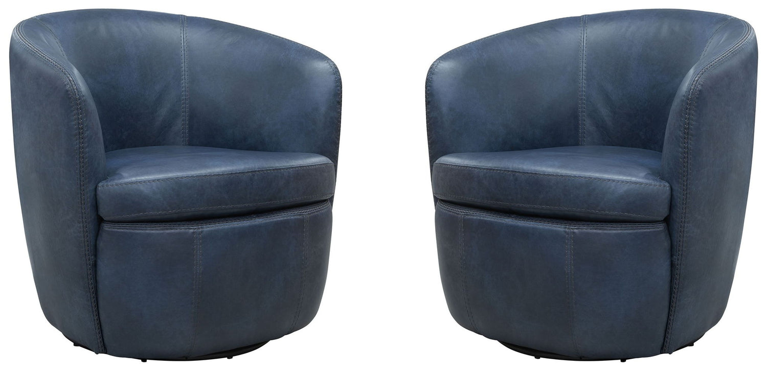 Barolo - 100% Italian Leather Swivel Club Chair (Set of 2) - Vintage Navy