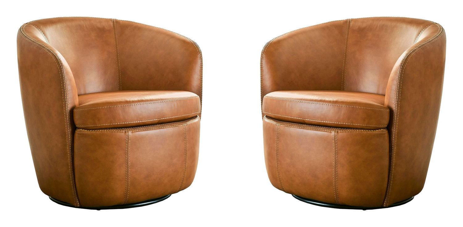 Barolo - 100% Italian Leather Swivel Club Chair (Set of 2) - Vintage Caramel