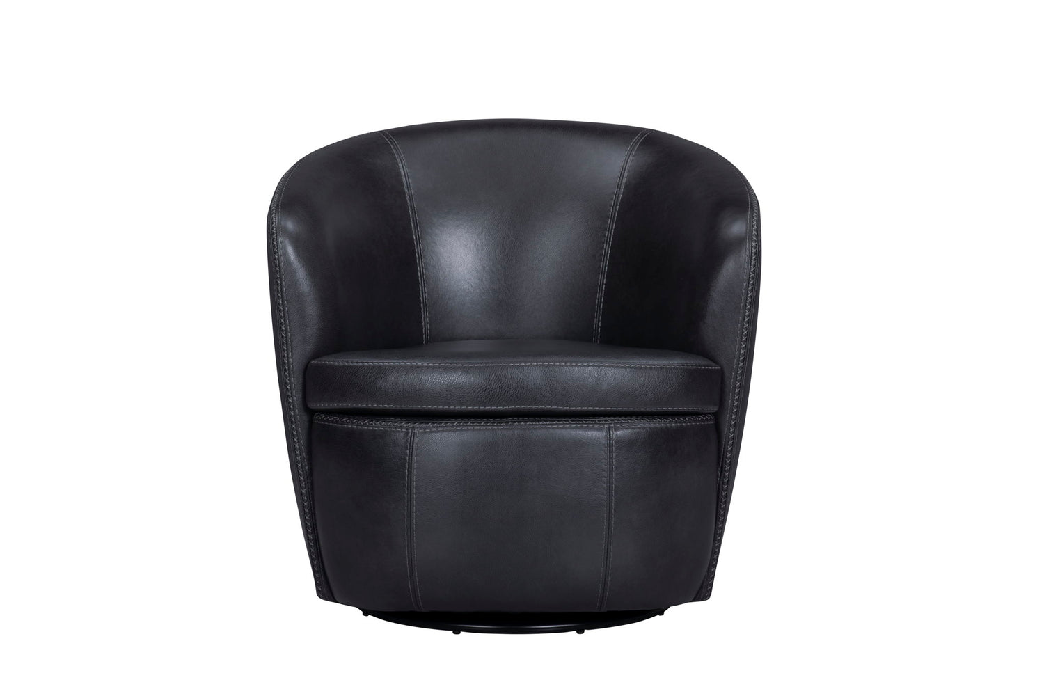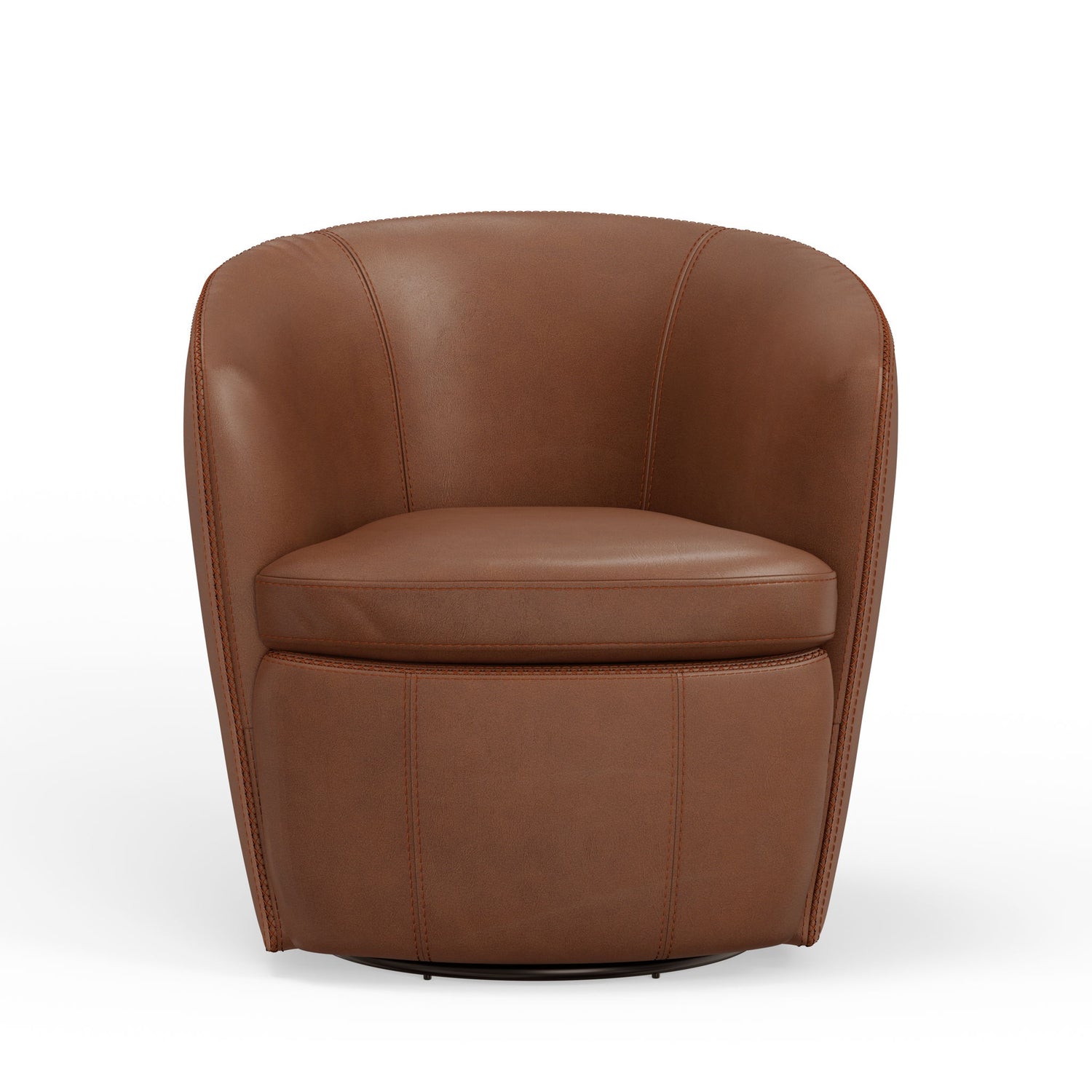 Our timelessly chic Barolo 100% Italian leather swivel chairs feature a classic yet versatile silhouette that fits effortlessly into almost any room. This low-profile barrel seat is wrapped in glove soft leather, offering 360-degree swivel action to allows for quick pivots in any direction. Bold decorative stitching elevates this chair to the next level, securing its place as a tried and true staple piece in your living space.