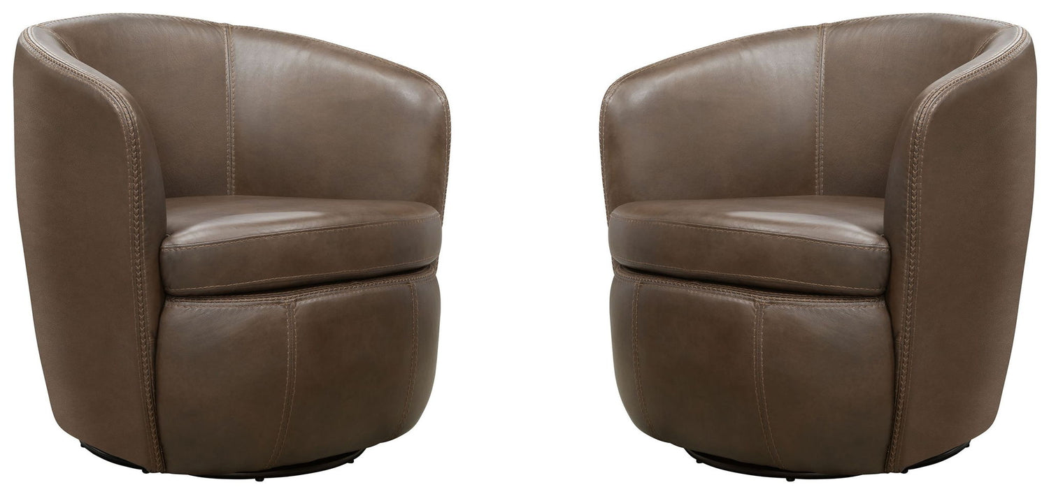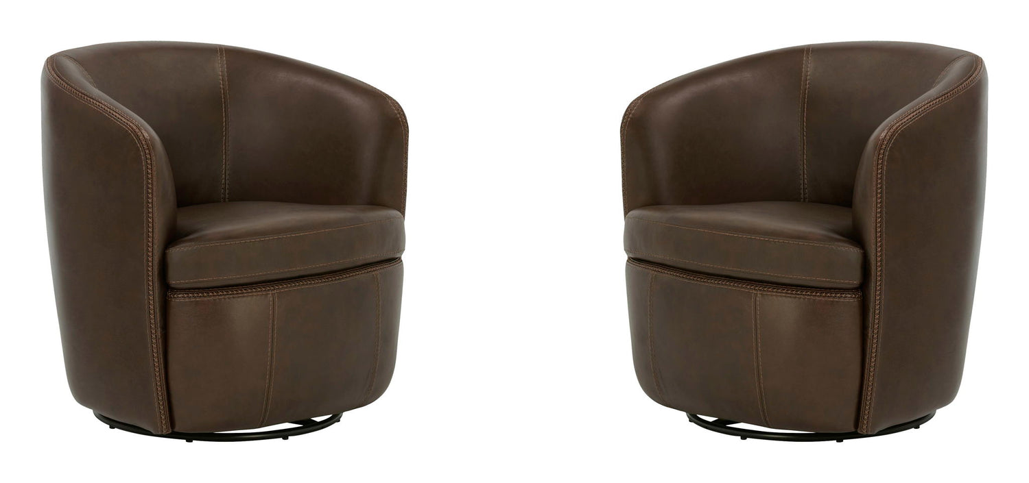 Barolo - 100% Italian Leather Swivel Club Chair (Set of 2) - Vintage Brown