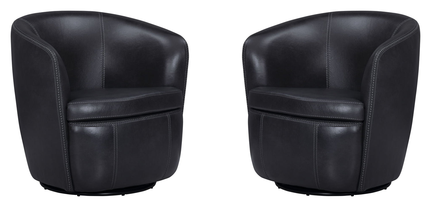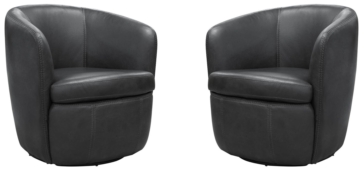 Barolo - 100% Italian Leather Swivel Club Chair (Set of 2) - Vintage Onyx
