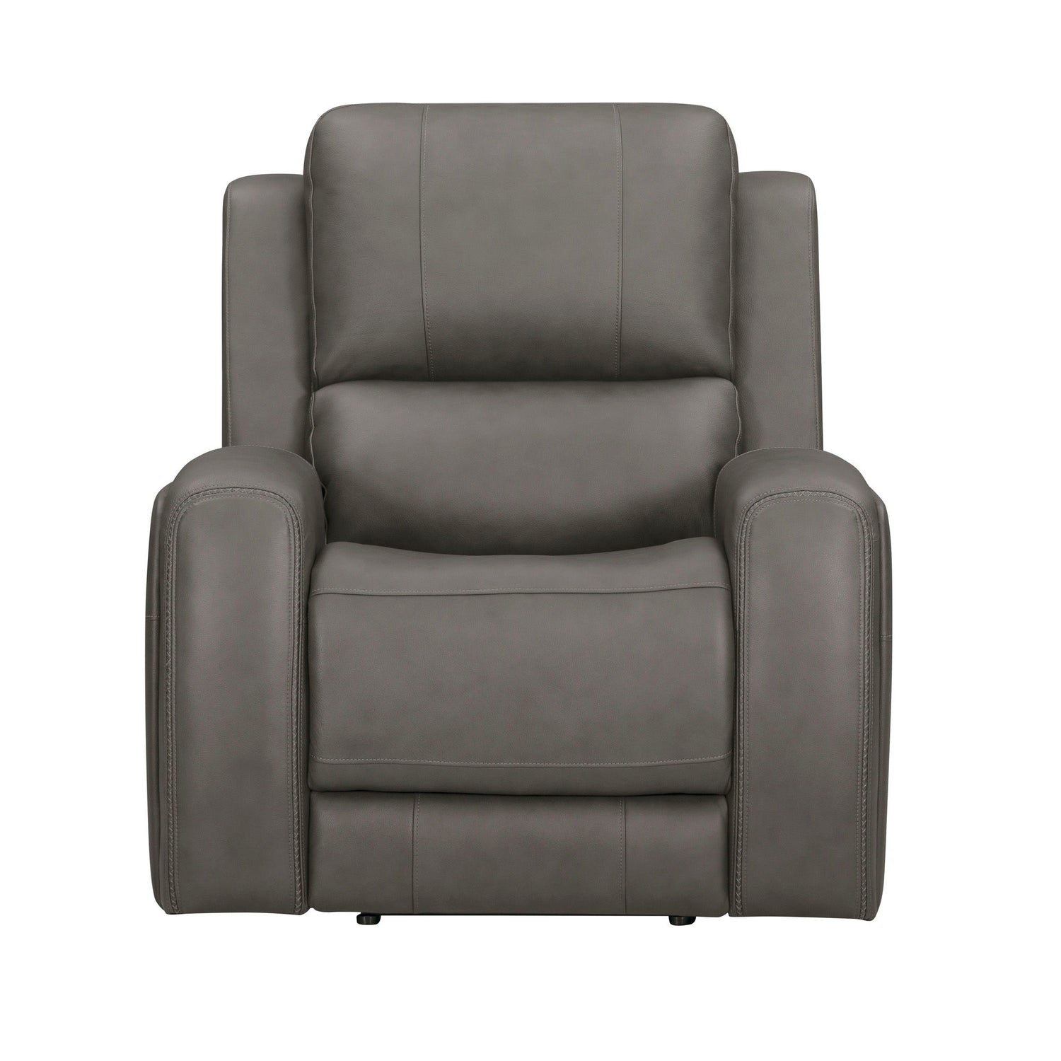 The Belmont recliner combines modern convenience with timeless style. Upholstered in supple leather with a custom match, it features generously padded, segmented back cushions and sloped track arms with refined stitching for a tailored look. The power recline function includes a "Home" button to easily return to the upright position and built-in USB and USB-C ports powered by energy-efficient Intelliswitch technology.