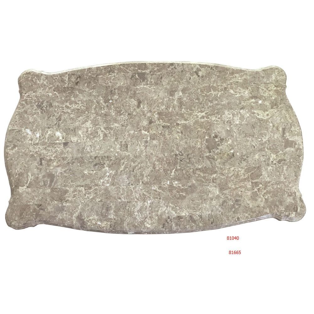 KD, Rectangular Leg Coffee Table • No Storage (Open Base) • Scalloped Marble Top: Spain Import Marble with MDF, 40mm • Wooden Scalloped Apron with Carved Floral Motifs: Champagne Finish, Poplar Wood • Wooden Queen Anne Legs: Champagne Finish, Rubber Wood •