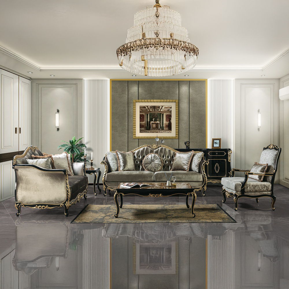 Betria - Sofa With 5 Pillows - Gold & Black High