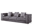 The Bovasis sofa and ottoman are ideal for smaller spaces. In a contemporary design featuring nailhead trim and sturdy metal legs. The beautiful velvet upholstery is soft to the touch and the button tufting adds dimension to the sofa. Pair it with the matching ottoman to complete the look. Available in two colors.
