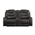 KD Back, Motion Reclining Function • Tight Back & Seat Cushion (2+2) • Diamond Tufted, Nail-head Trim [RA] • CONSTRUCTION: Pocket Coil Cushion, Sinuous Spring Seat, Inside Frame: Metal & Wood (Hemlock/Fir, Ply), Foam (D28) • CUSHION: Tight () • BACKREST: Tight Cushion (Webbed) • ARMREST: Saddle Style, Front w/Nail-head Trim • Metal Base with Reclining Motion: External Latch Pull Handle (Outside Armrest), [MM] ••• Material: PU (Pattern) • Pillow NOT Included