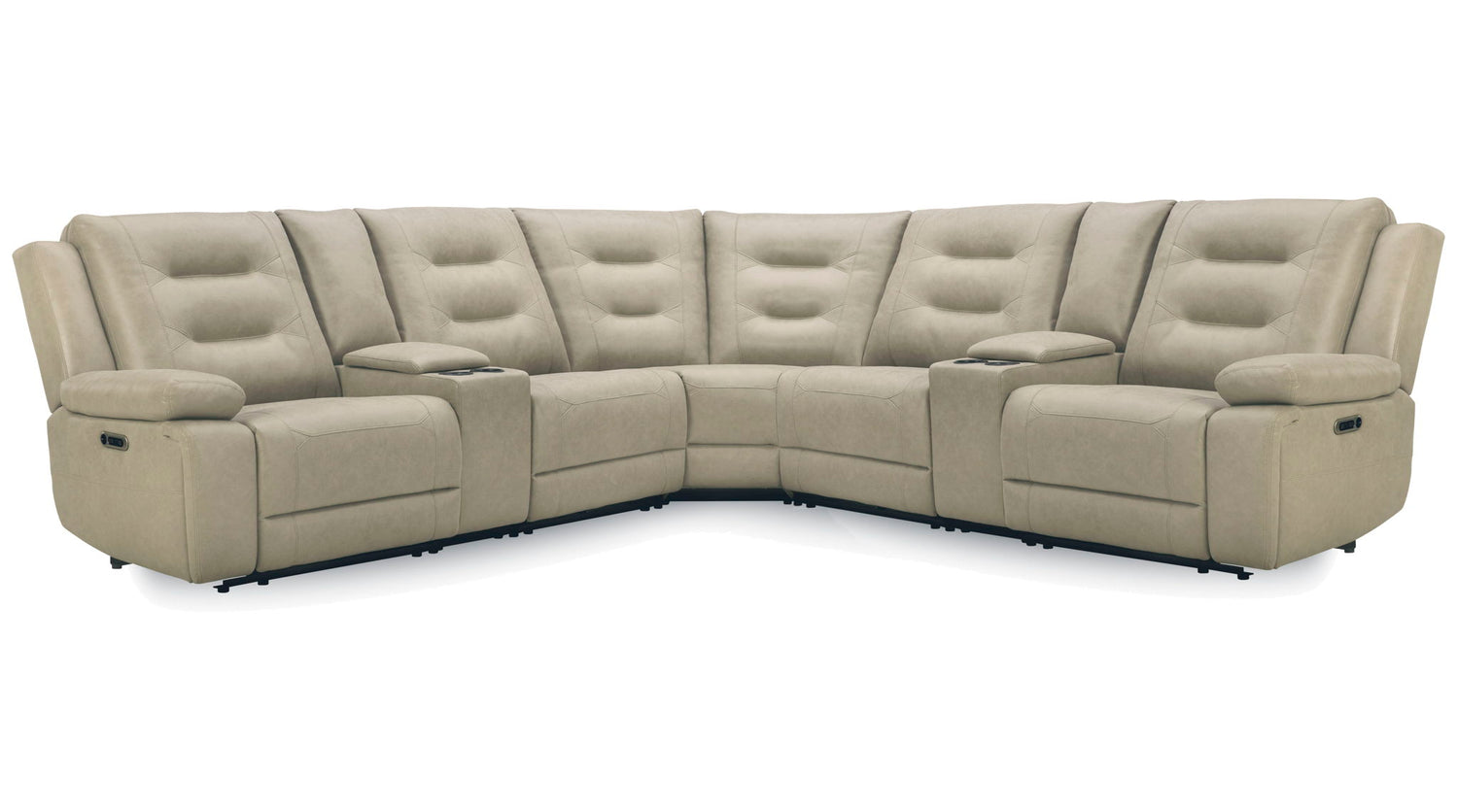 Caldwell - 7 Piece Modular Power Reclining Sectional With Power Adjustable Headrests With 2 Consoles - Tahoe Fog