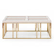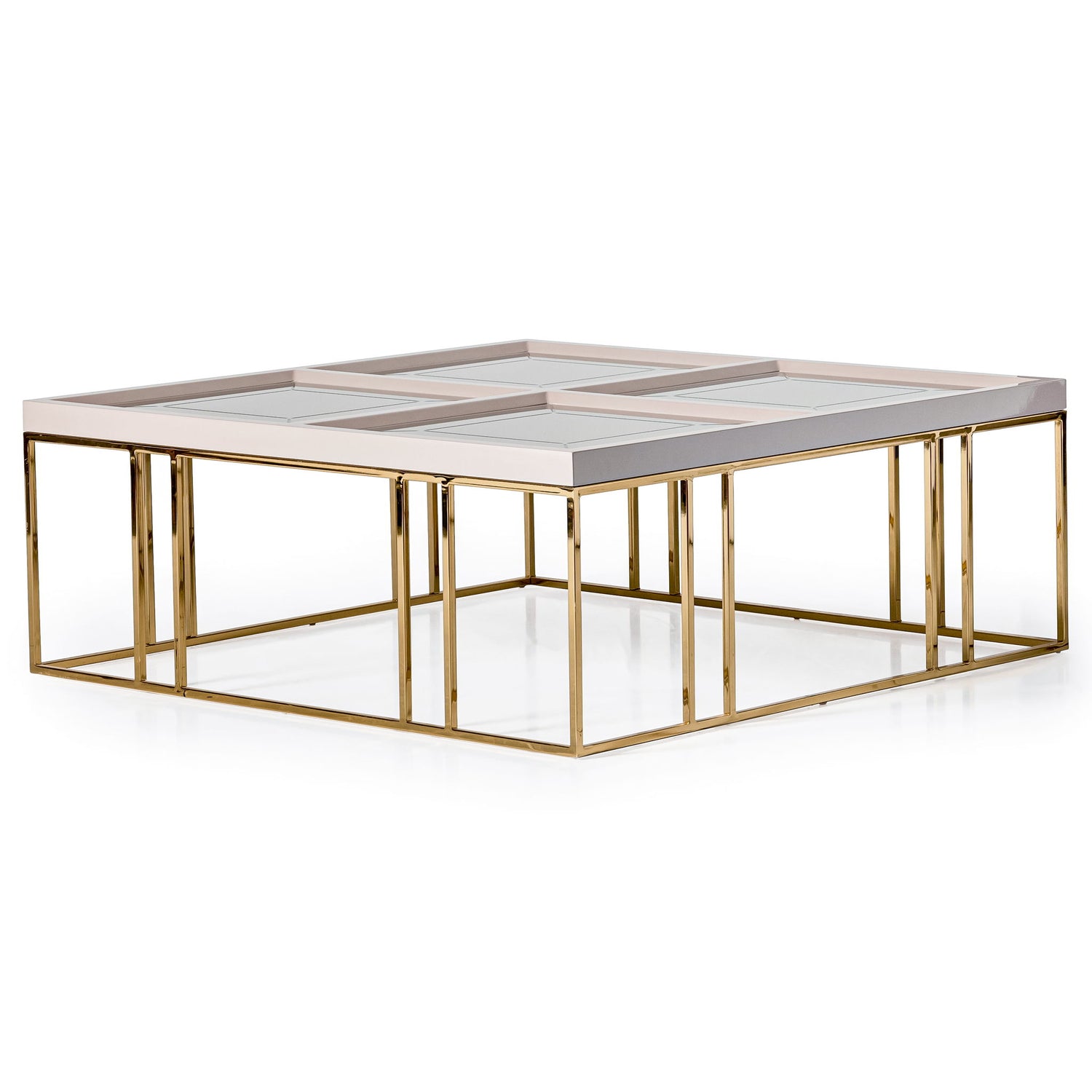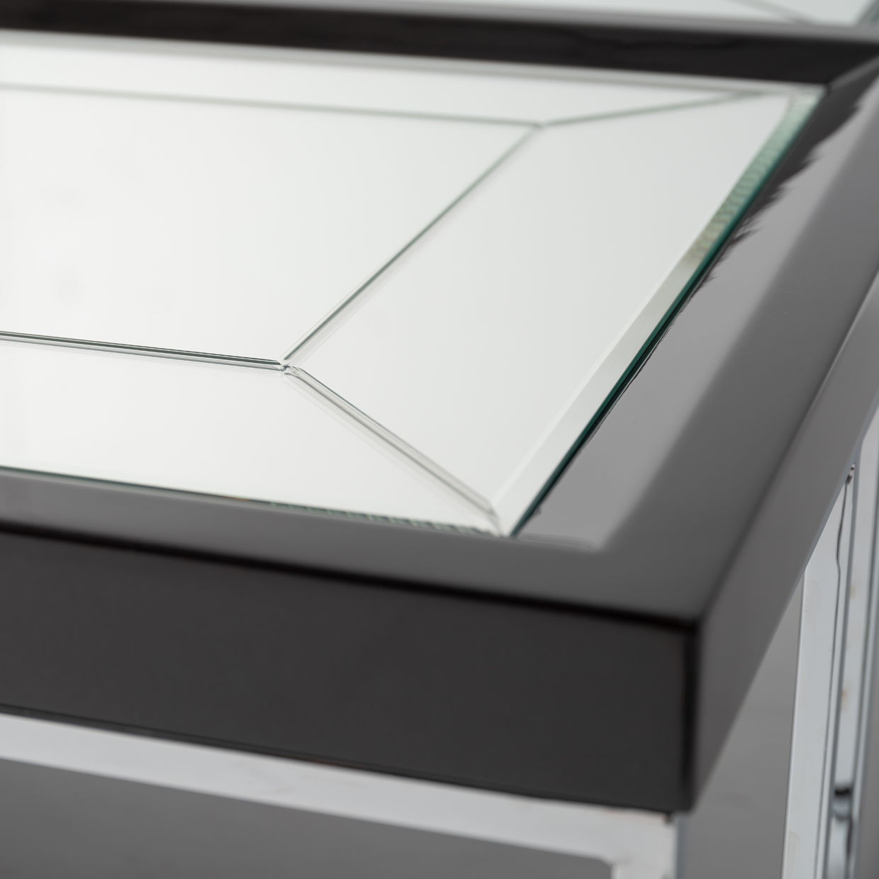 The finishing touch to your living room. This stunning table features a shimmering ivory finish that perfectly complements your living room and beveled mirror panels that add a touch of intrigue and sophistication. This cocktail table is perfect for entertaining guests, holding drinks and snacks, or simply adding a touch of style to your living room. Pair it with the rest of the Carmela collection for a complete look that exudes refined romance and understated elegance. This cocktail table will take center stage in your living room.