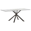 Gorgeous sintered stone brings depth and dimensionality to a modern rectangular dining table. A true centerpiece in your kitchen or dining room, it boasts an enchanting white mirage finish on its table top, offering multi-tonal allure with a hint of glam. The modern design includes a bold sculptural base that provides support with its starburst motif. The base receives a glossy black finish, offering a slick, sophisticated touch of sculpted elegance. Choose seasonal or timeless table linens and enjoy delicious meals with family and friends.